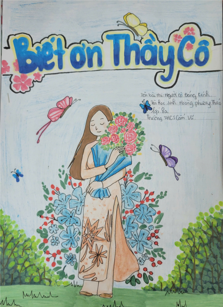 Ở phần viết bài, các em học sinh đã thể hiện cảm xúc chân thành qua những trang văn mộc mạc nhưng sâu sắc. Nhiều bài viết chia sẻ những kỷ niệm xúc động, những câu chuyện giản dị về sự tận tâm của thầy cô, để lại ấn tượng đẹp trong lòng người đọc.